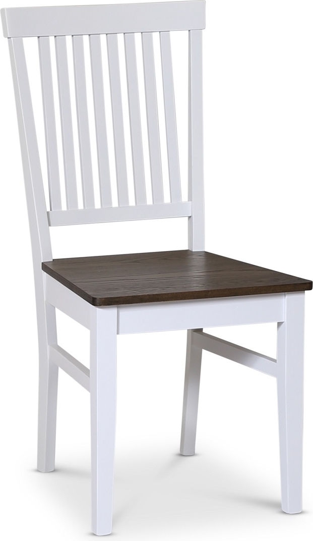 - Skagen spisegruppe; rundt spisebord Ø120 cm - Hvit / brunoljet eik med 4 skagenstoler (Ribber i ryggen) med brunoljet eikesete