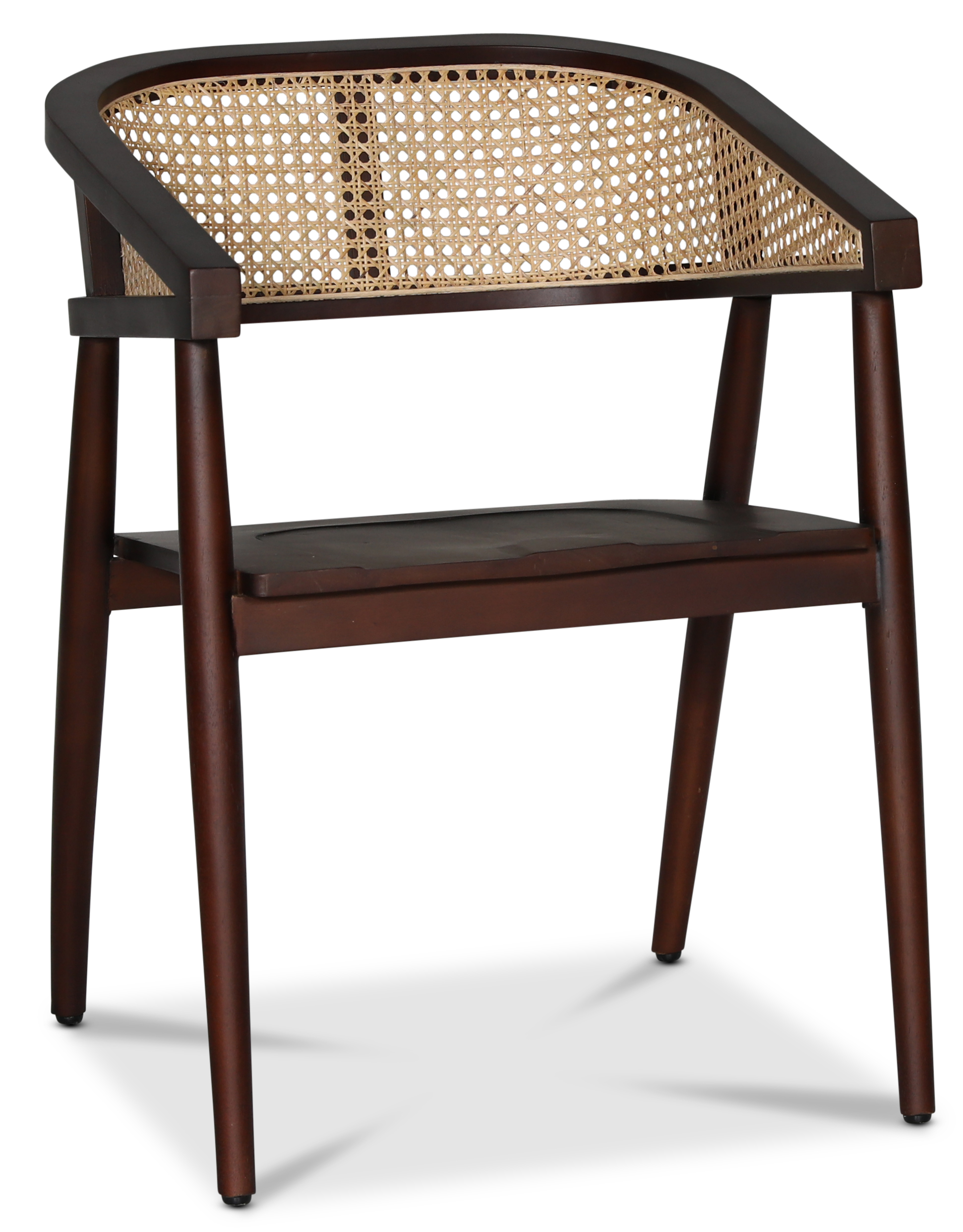 Armstol med ramme laget av eksklusiv mahogny i brunt, ryggstøtte og sete i naturfarget rotting. Svart tresete, kombiner gjerne med en setepute.
