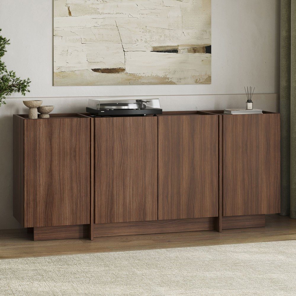 Dromma er et elegant skjenk med en varm finish i Milano-valnøttre som gir rommet en sofistikert og naturlig følelse. Det stilige designet kombinerer funksjonell oppbevaring med et moderne uttrykk, noe som gjør møblene til et perfekt tillegg til stuen, spisestuen eller gangen.