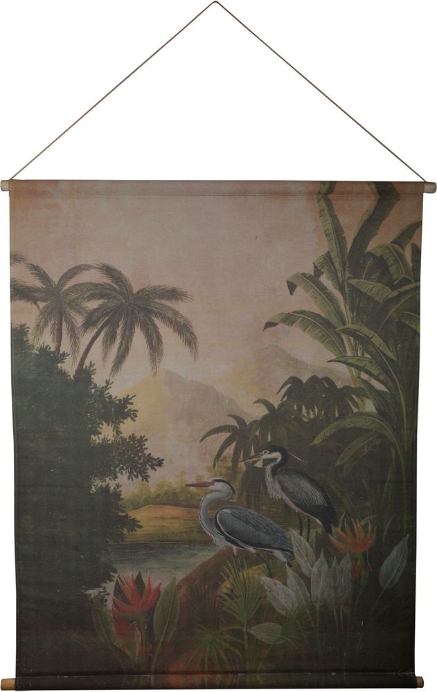 Et pent tekstilbilde med motiv av tropisk savana.