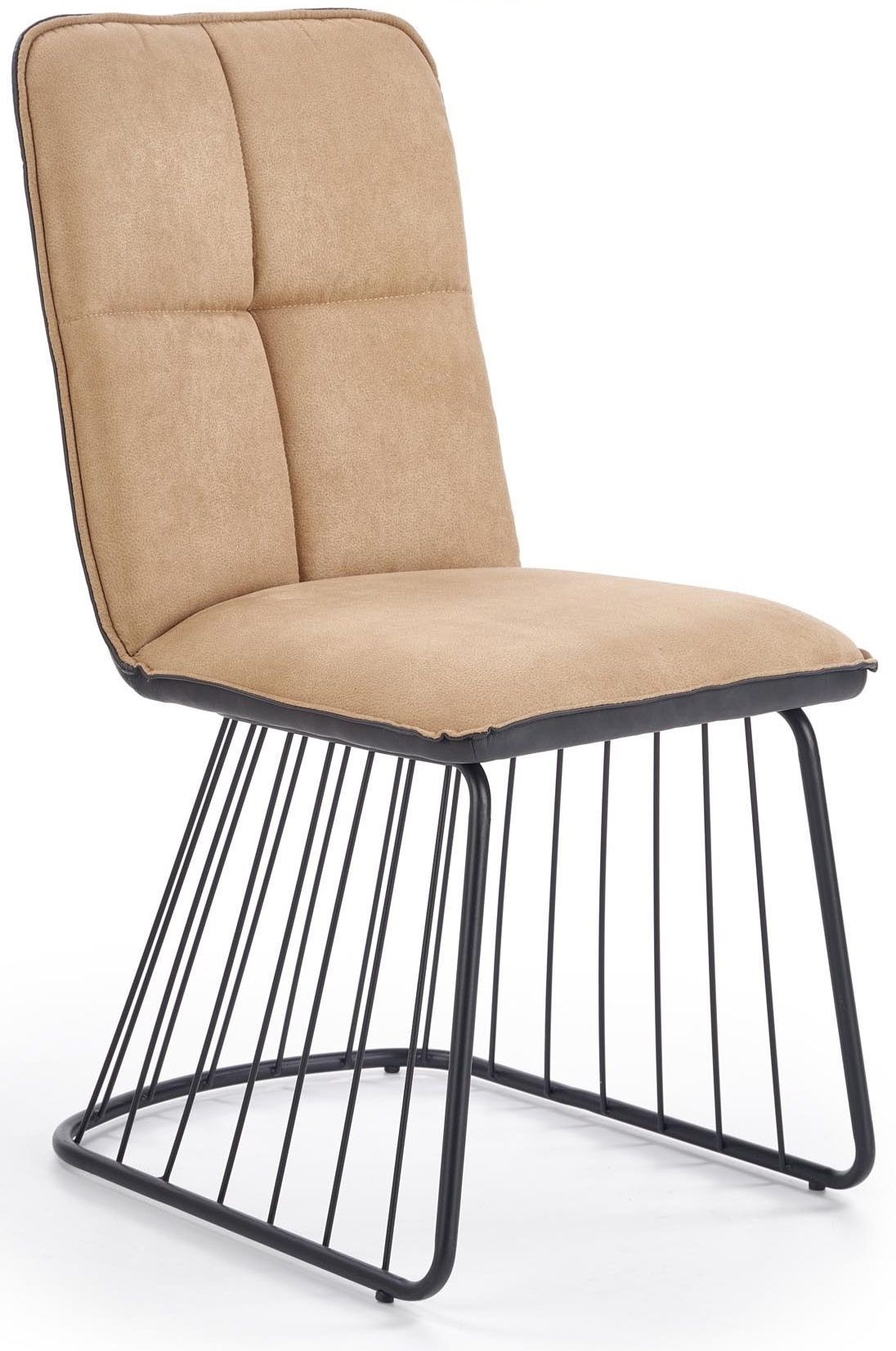 En pen spisestol med moderne design. Spisestolens understell er tilvirket av pulverlakkert metall og setene er trukket med en herlig blanding av kunstskinn og tøystoff for maksimal komfort.