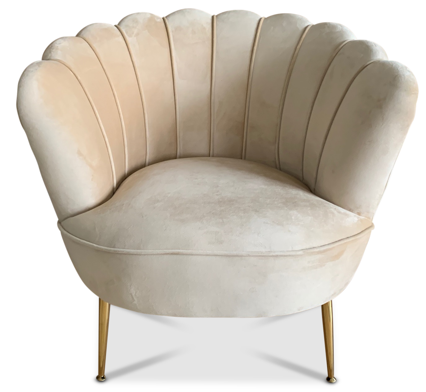 Lenestolen Snäckan er en stilig og behagelig lenestol, kledd i et herlig beige fløyelsstoff. Ryggen ser ut som et skjell. Snäckan finnes i forskjellige farger samt 2-seters og 3-seters sofaer.