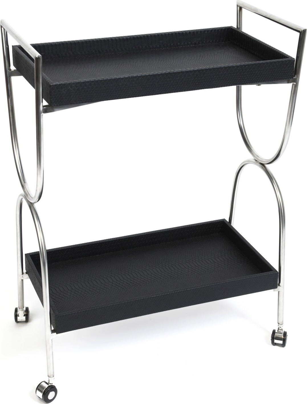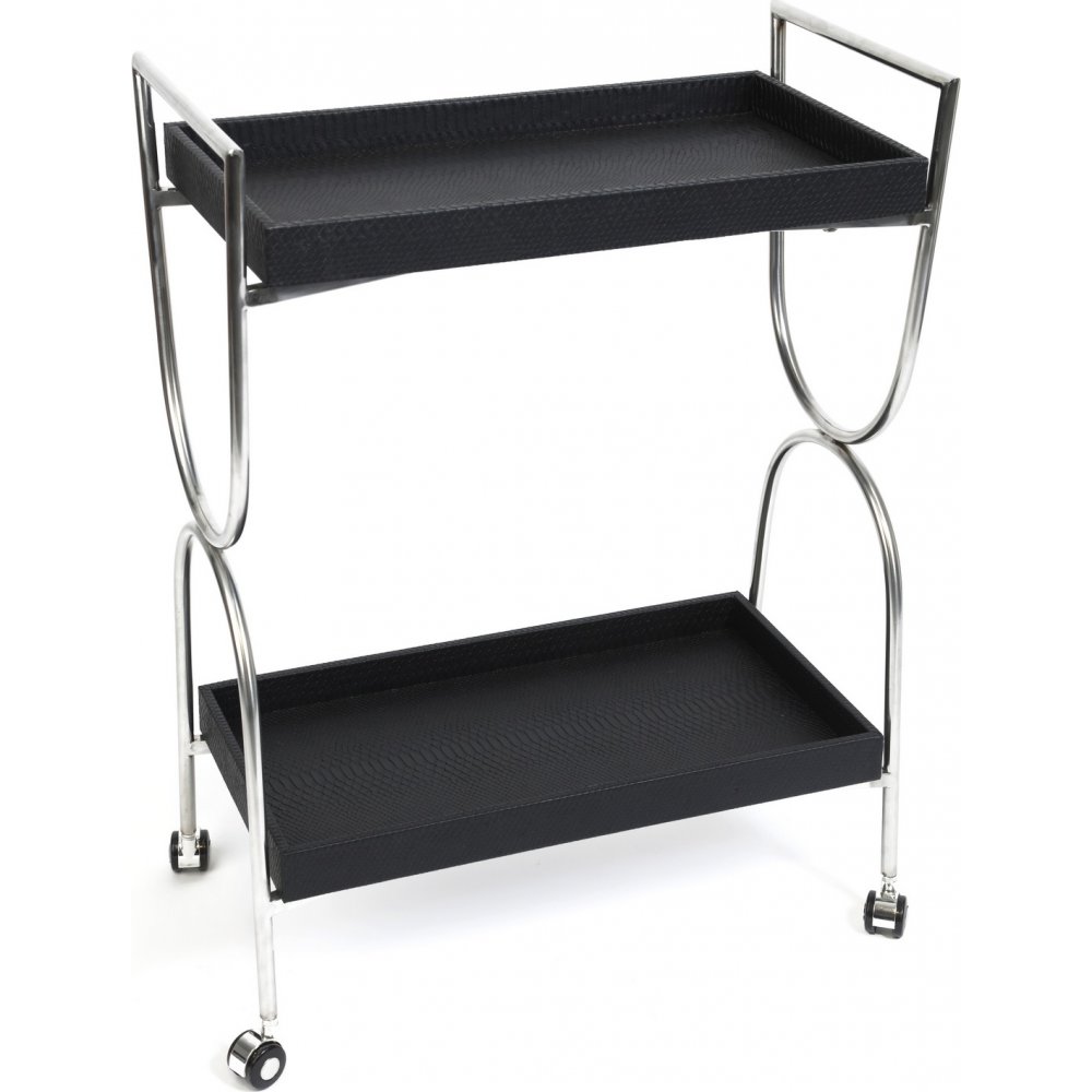 Snake serveringsvogn lux med ramme i krommet metall og hylleplan kledd i sort slangelignende kunstlær.