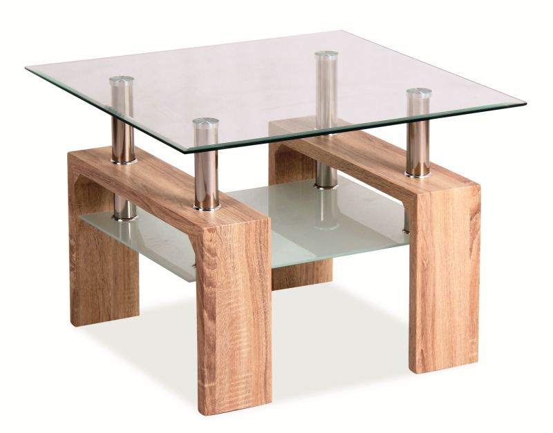 Et herlig sofabord med et moderne design. Underdelen er laget av MDF med en herlig sonoma eikeutførelse og med detaljer i forkrommet metall, og bordplaten er av herdet glass med en praktisk underhylle for smart oppbevaring.