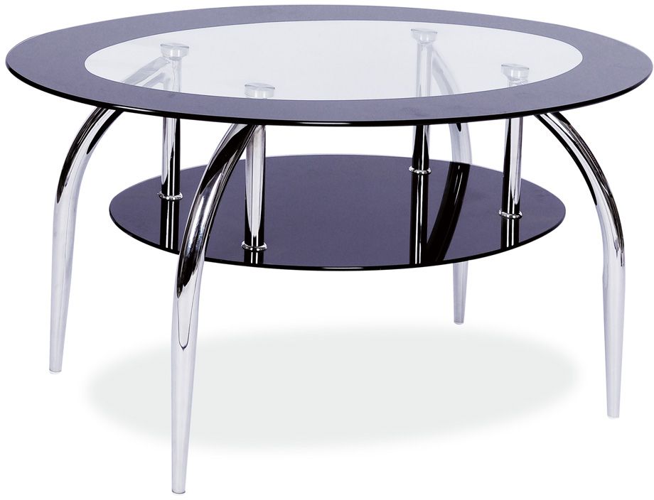 Et herlig sofabord i et moderne design. Stammen er laget av forkrommet metall og bordplaten er av herdet glass med en praktisk hylle til smart oppbevaring.