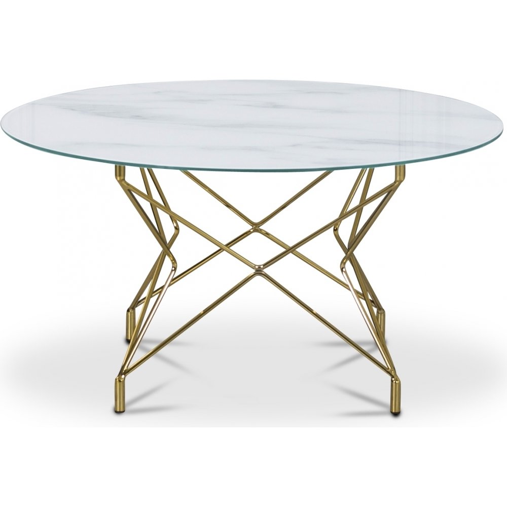 Sofabord Star 90 cm - Hvitt marmorert glass / messingfarget understell