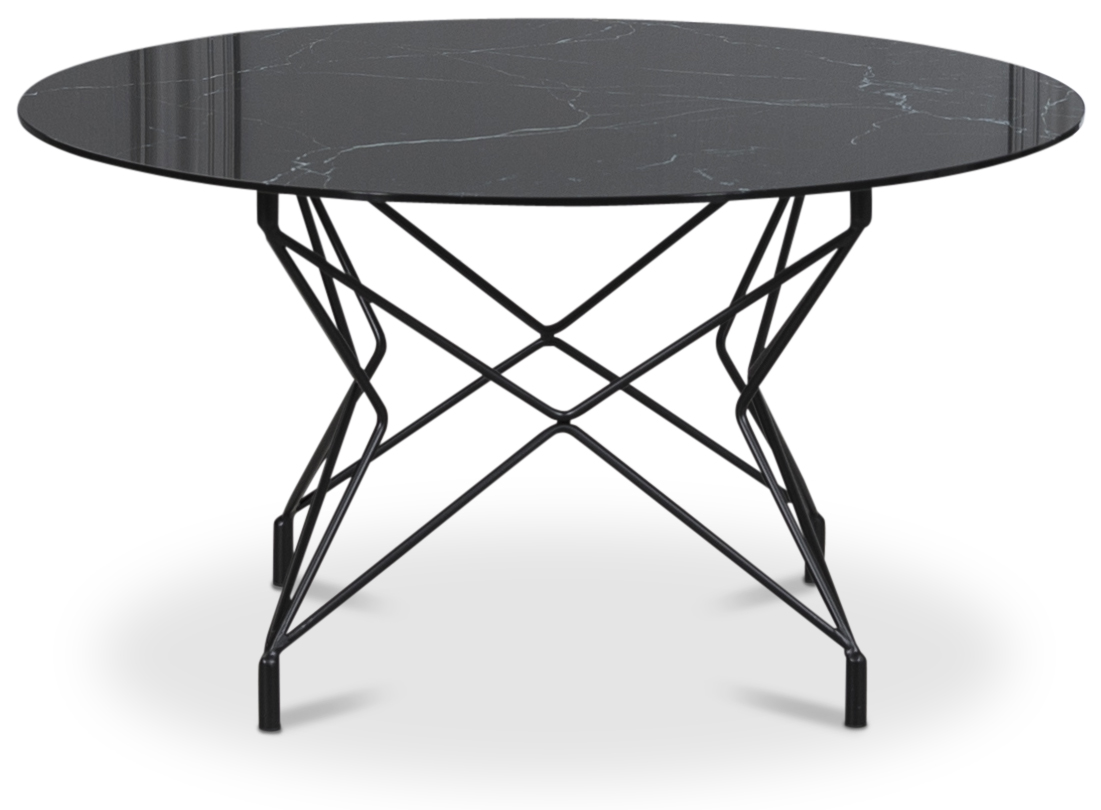 Sofabord Star 90 cm - Svart marmorert glass / Svart understell