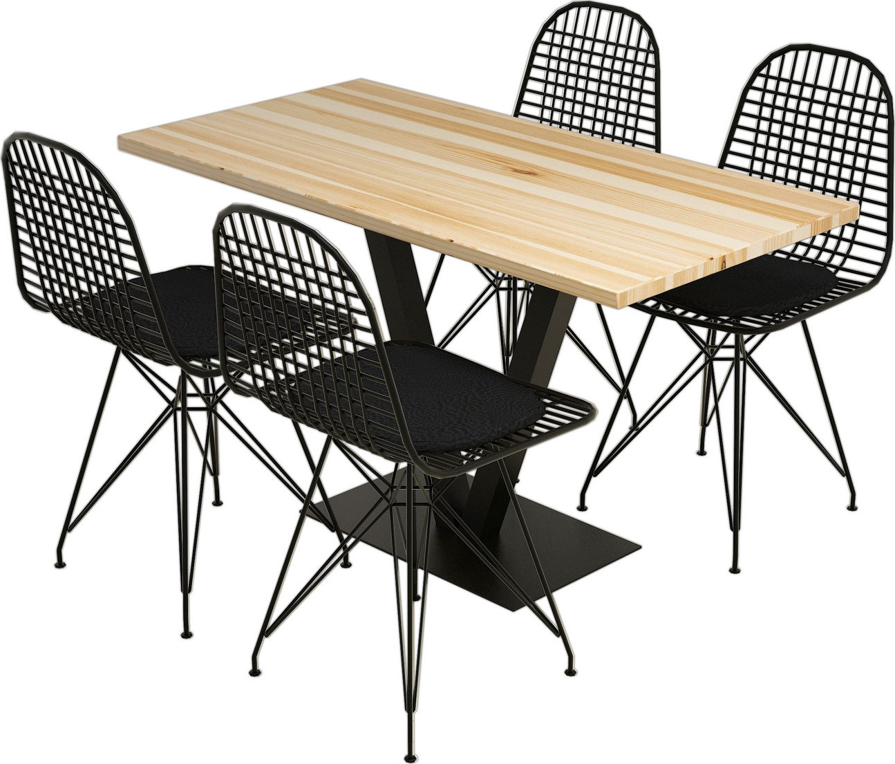 Spisegruppe av furu. Metallben.