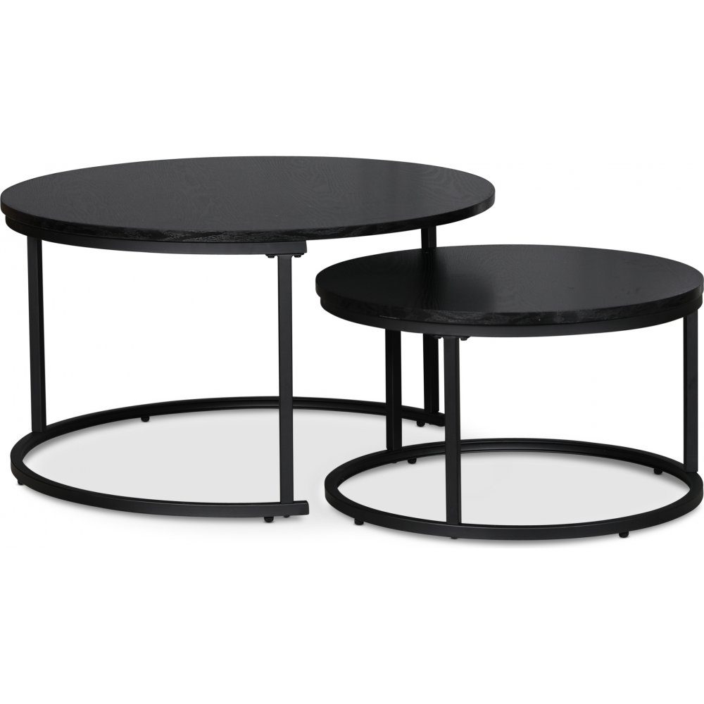 Solano settbord med svartbeiset askfoliering og stamme i matt svart metall.