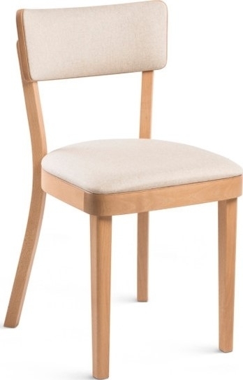 Spisestol i bøk eller eik med valgfri farge på ramme og trekk. Leveres montert.