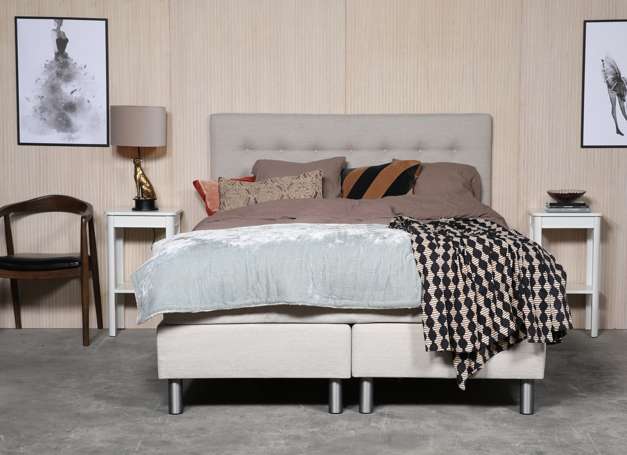 Sonar kontinentalseng med 7-sone lomme komplett med et luksuriøst hodegjerde med knapper.