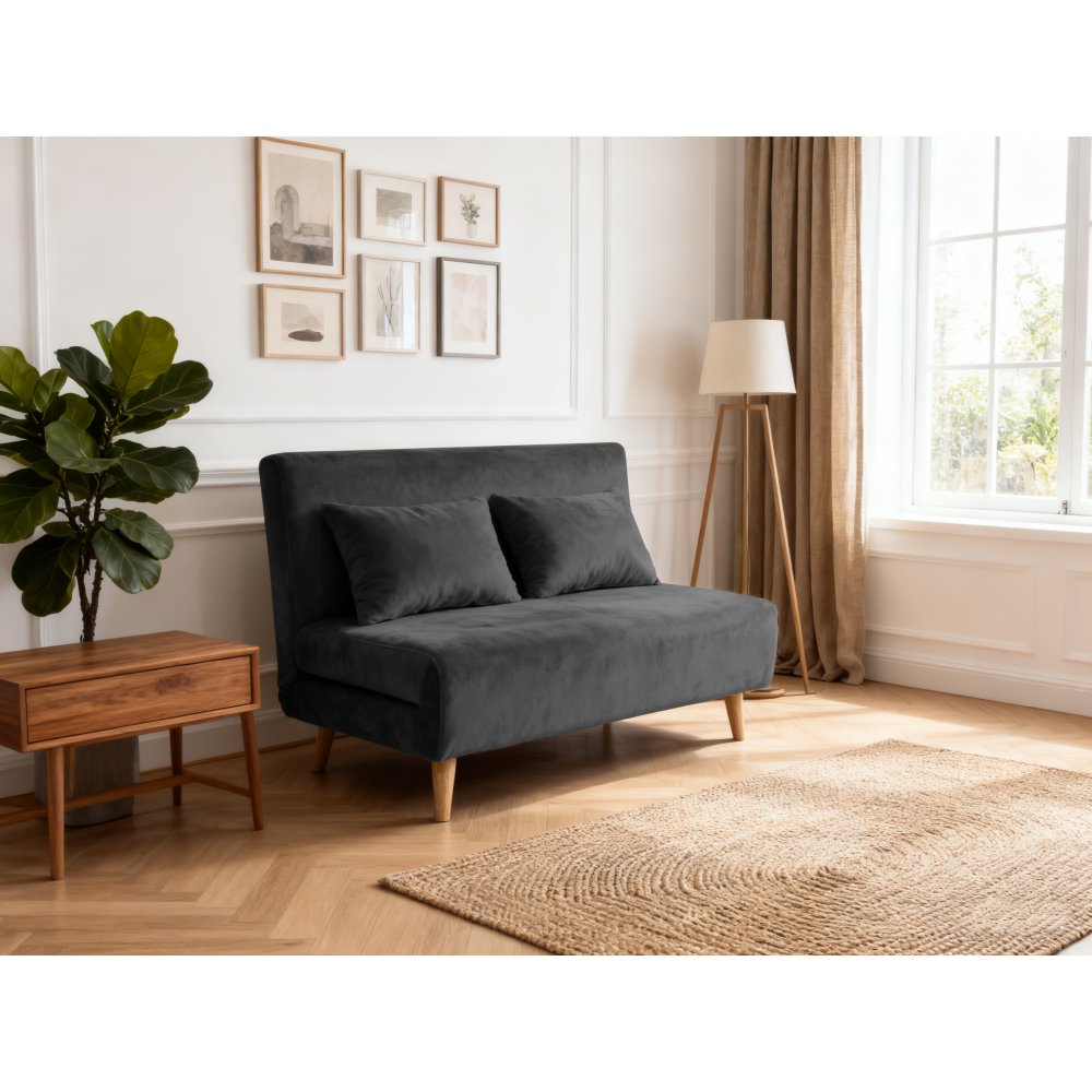 Helsingborg sovesofa kombinerer funksjon og enkelhet i et kompakt design. Dekket av mørkegrå fløyel gir den et elegant og sobert uttrykk som passer like godt inn i moderne som klassiske hjem. Den myke fløyelsoverflaten bidrar til en varm og innbydende følelse, samtidig som den er slitesterk og enkel å vedlikeholde.