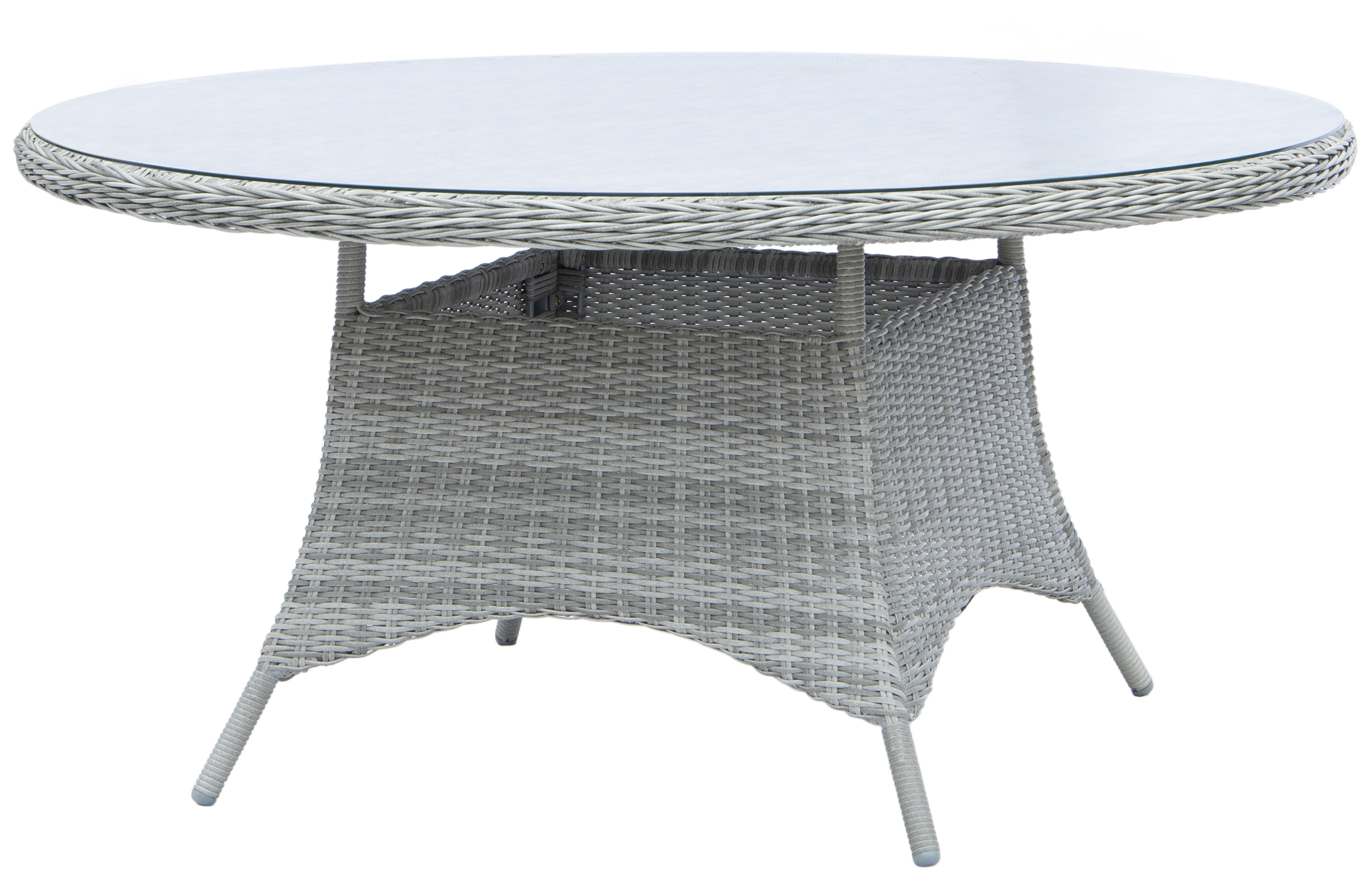 Spisegruppe; 4 stoler og spisebord Ø110 cm grå/rotting