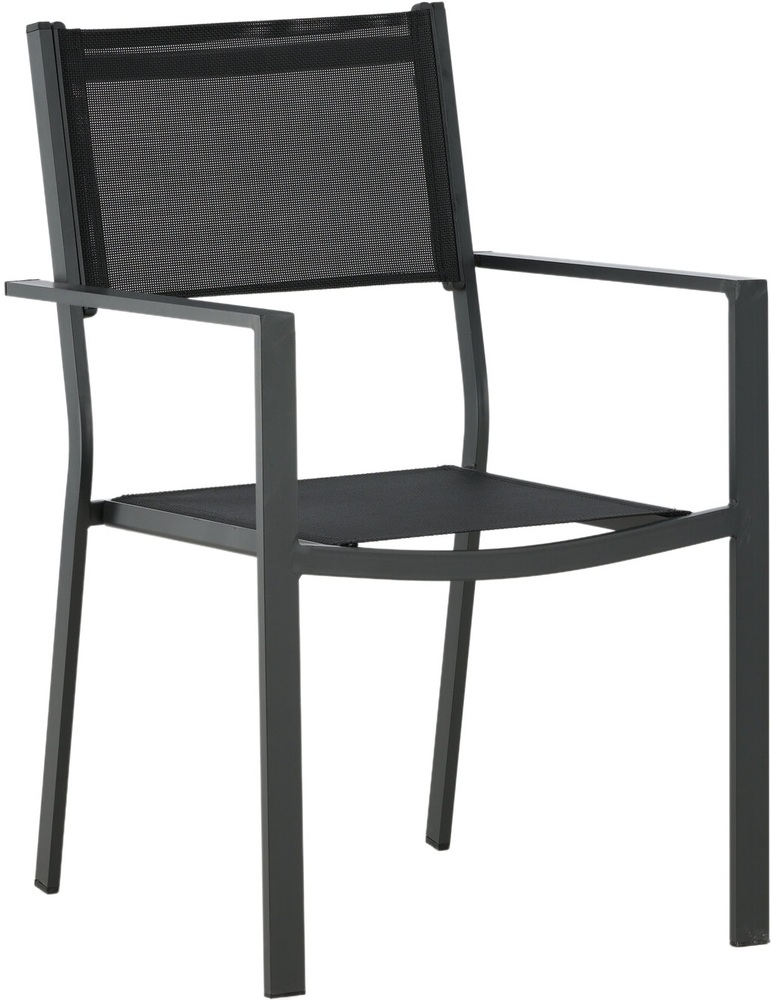 Gi terrassen eller balkongen din et løft med dette spisestuesettet i stilige svarte og naturlige toner. Det store spisebordet på 205 x 90 cm har en slitesterk bordplate i naturfarget polywood og ben i svart aluminium, en slitesterk kombinasjon som tåler elementene. Med seks stabelbare stoler i sort aluminium og værbestandig textilene skapes en funksjonell og stilig spiseplass som passer like godt til hverdagslige sommermiddager som festlige grillkvelder.