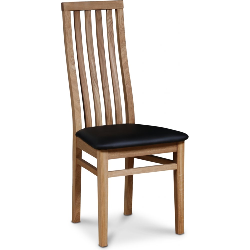 Inkludert 4 Alaska spisestoler med ramme laget av europeisk oljet eik, svært behagelig ryggstøtte, samt sete laget av svart øko-lær.