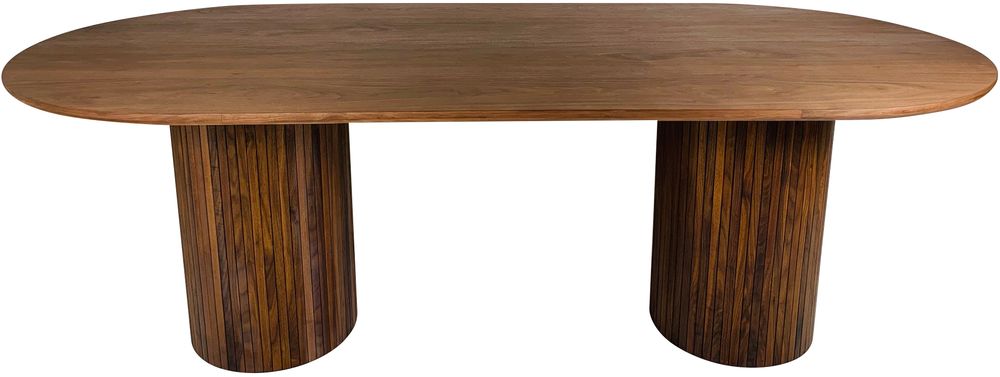 Nordansjö spisegruppe fra Skånska Möbelhuset, ovalt spisebord, i valnøtt med fire Strömsberg lenestoler i brunlakkert mahogny med rotting i ryggen og sete.