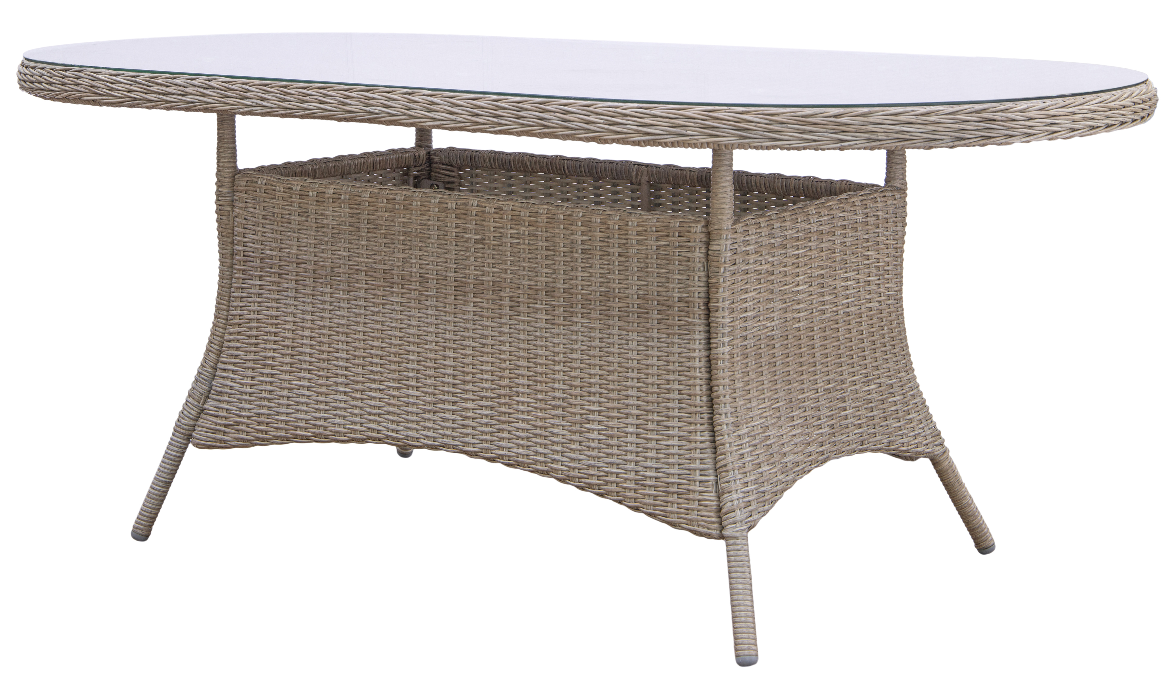 Dette spisestuesettet kombinerer et spisebord i klassisk rottingdesign med seks elegante lenestoler. Bordet har en ramme trukket med naturfarget syntetisk rotting og en bordplate laget av herdet glass, som gir en stilig og slitesterk overflate for utendørs bruk. Stolene er stabelbare og har et moderne design med en sortlakkert metallramme og sete-/ryggdeler i slitesterk plast med et trelignende noonwood-utseende, noe som gjør dem både komfortable og enkle å plassere.