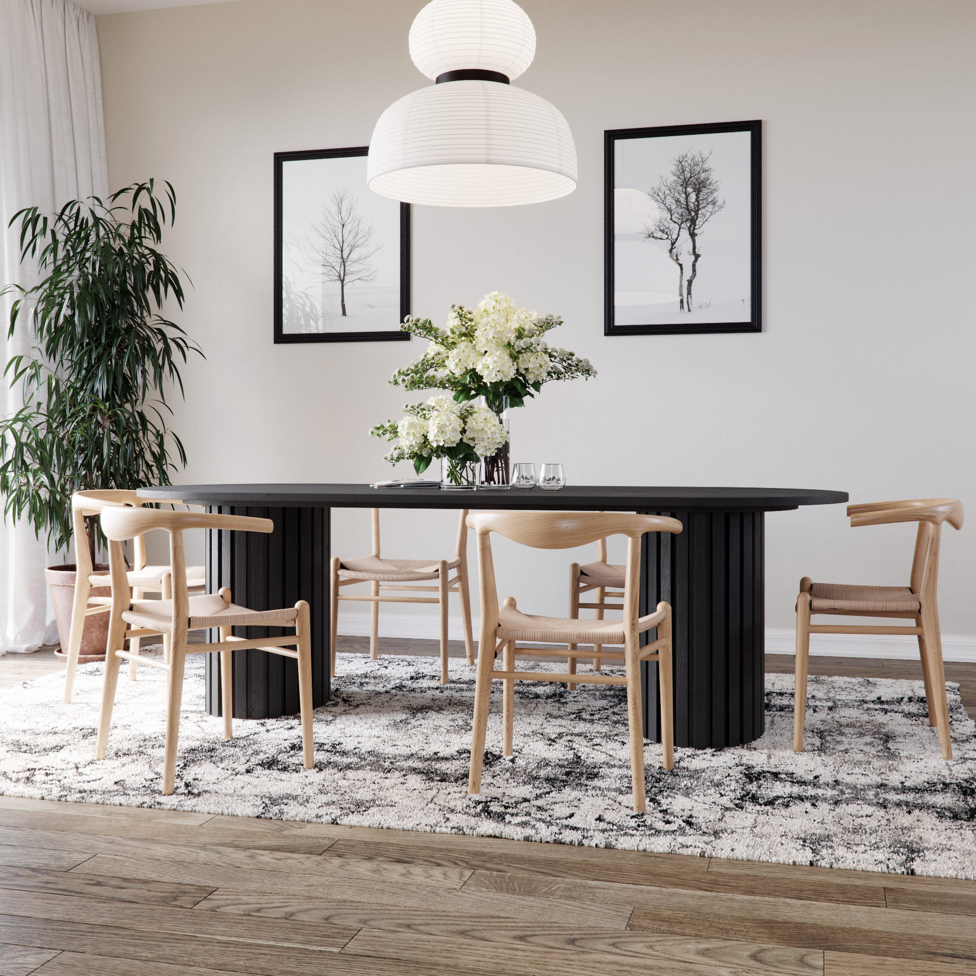Vår PiPi-bordserien står for håndverk, design og holdbarhet. Leveres i valnøtt, whitewash, svartbeiset tre og eik. Serien inneholder forskjellige størrelser og design. Velg det designet som passer best for din spiseplass. Denne modellen har en stilig oval plate, designet svartfarget finér.
