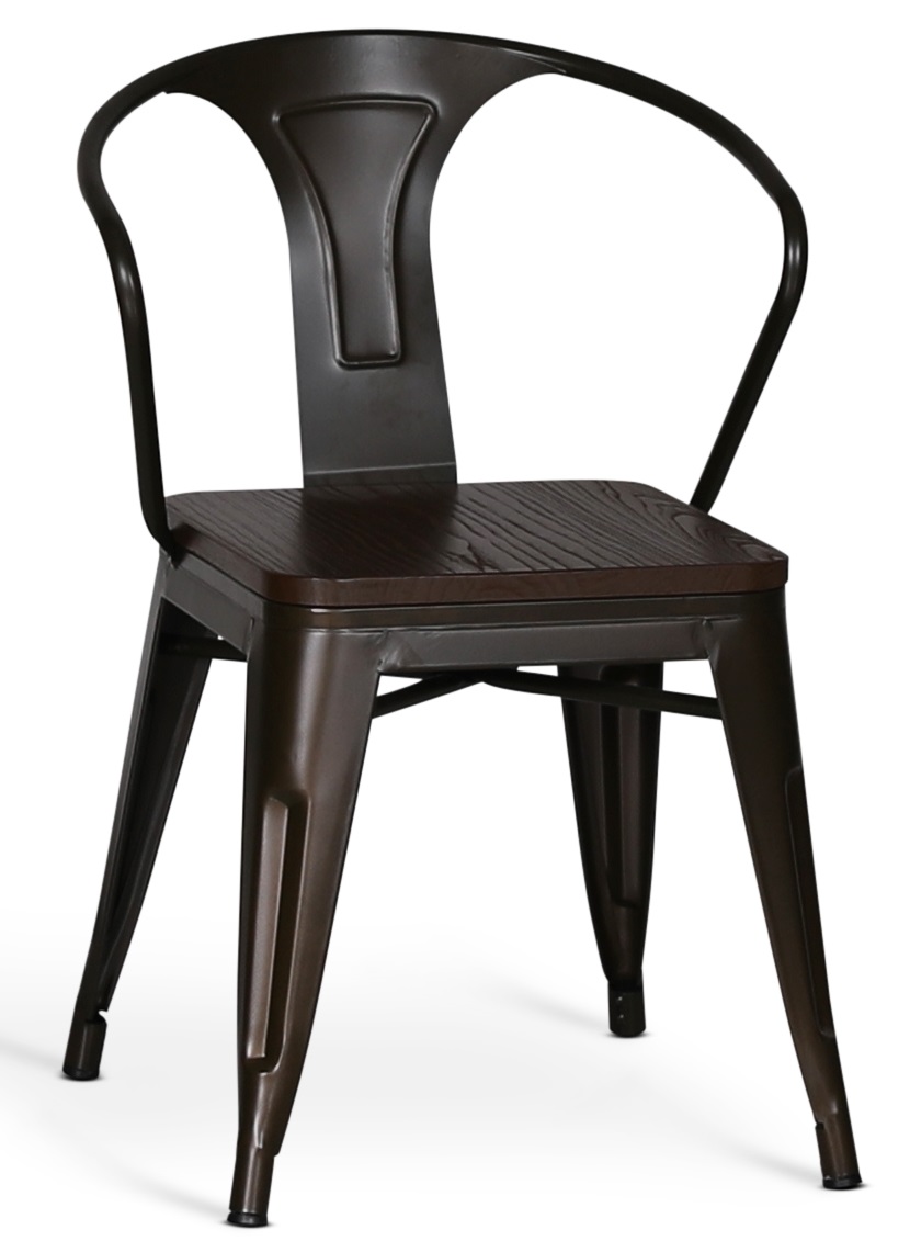 En fin spisestol i retrodesign. Underdelen er laget av metall og setet er av tre i valnøttutførelse.