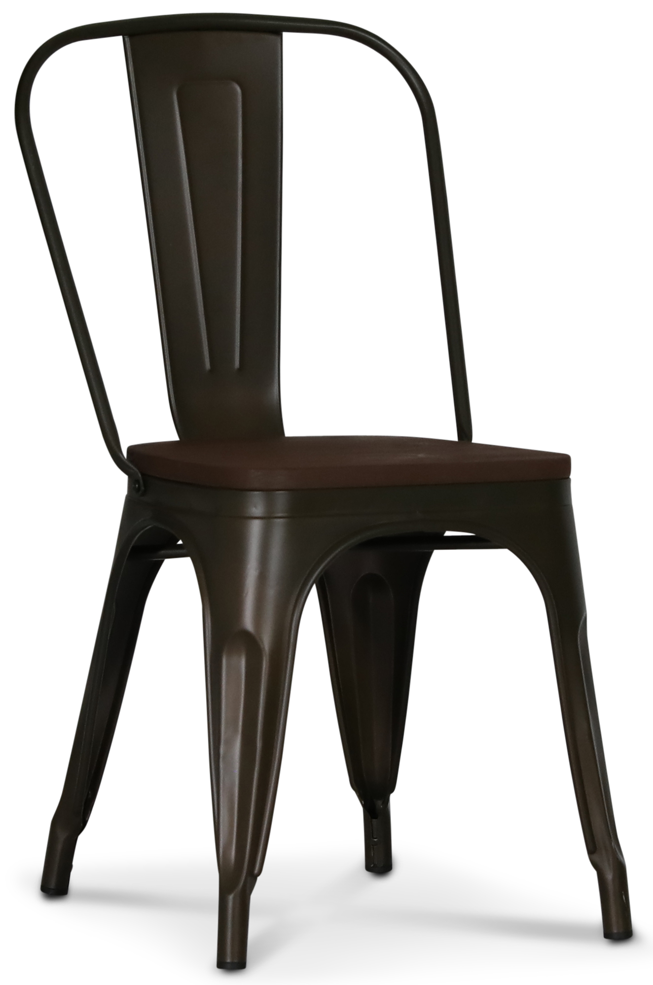 En fin spisestol med en retro design. stolen er produsert i sotete metall med et mørkebrunt tresete.