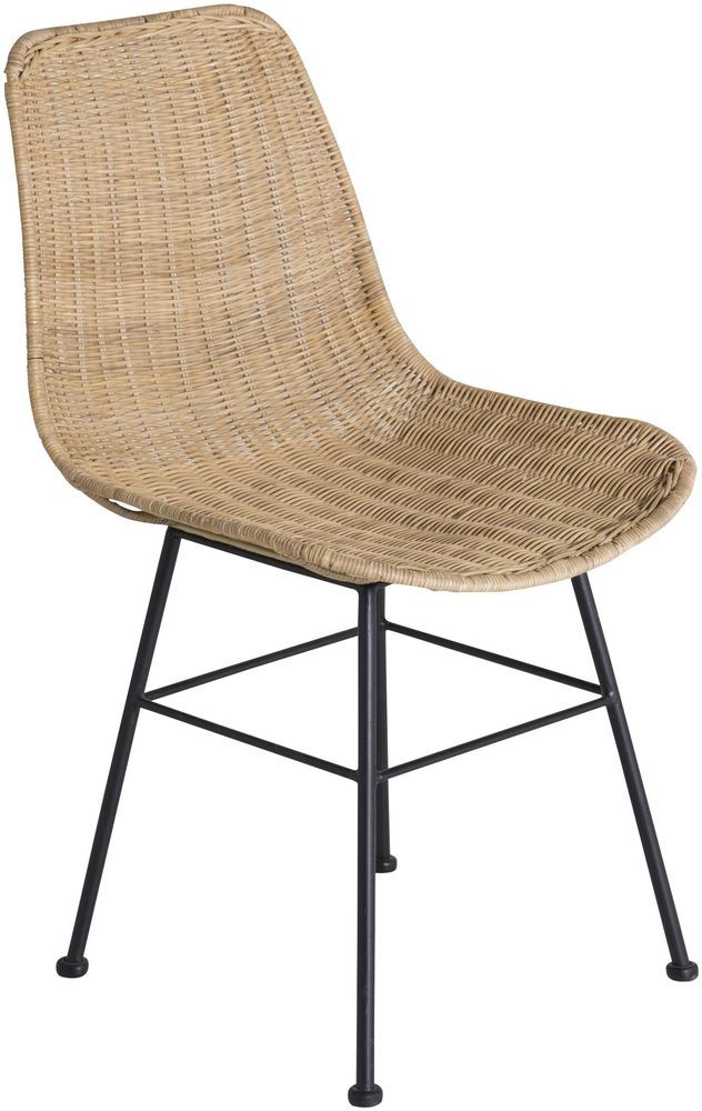 Juno er en spisestol med sete i naturrotting og ramme i svart metall.