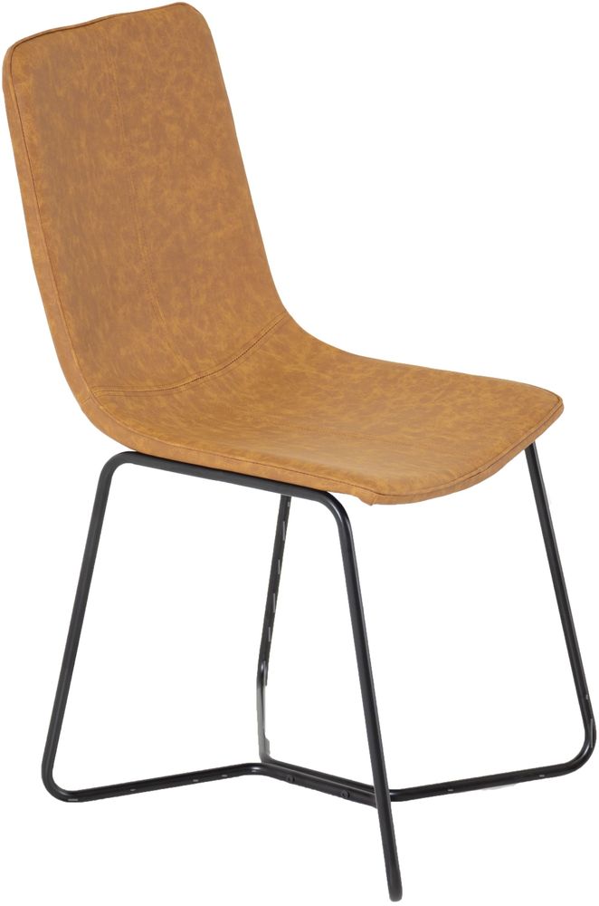 Spisestol kledd med brun PU, skumstoppet sete og rygg for god komfort. Ramme i svart metall.
