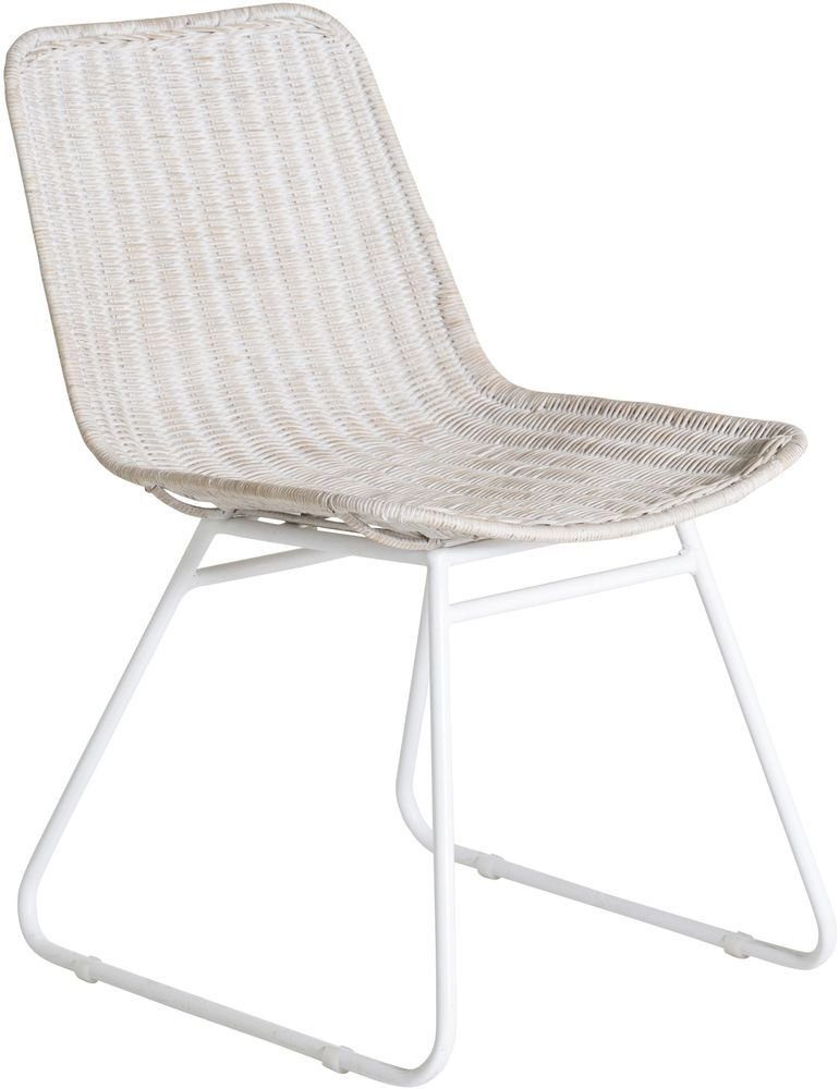 Spisestol i hvit naturlig rotting med stamme i hvit metall.