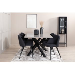 Sumo spisegruppe Ø130 cm inkl. 4 stk. Brandon svarte spisestoler - Oljet eik/sølvmarmor + Møbelføtter