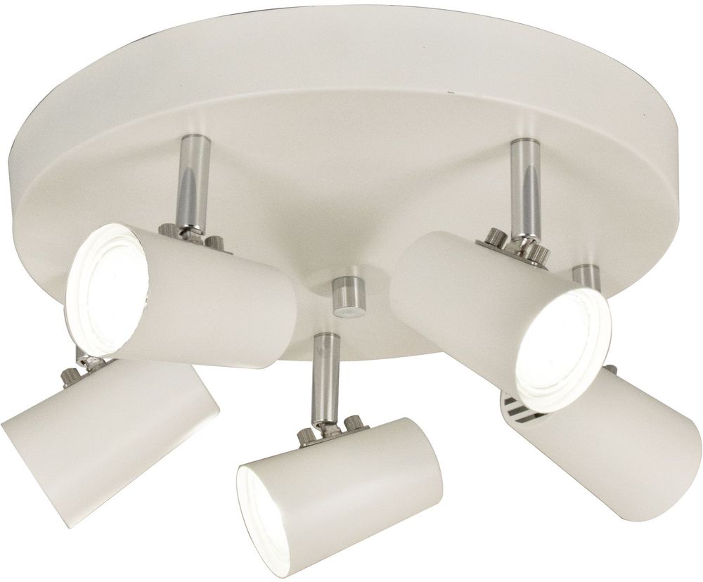 Spotlight i hvitt og forkrommet metall. Enkel å montere i taket.