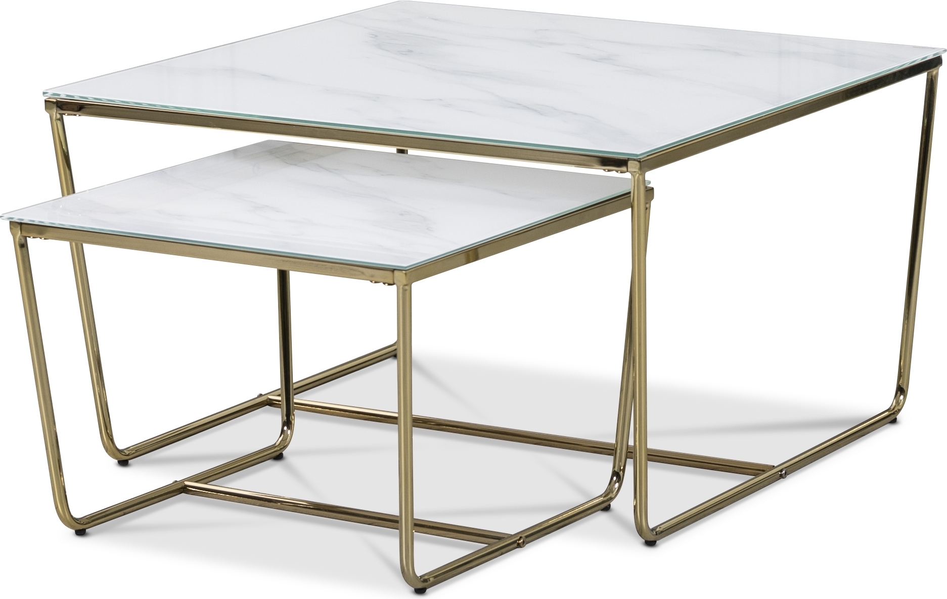 Stella Settbord - Hvitt marmorert glass / Messingfarget underdel