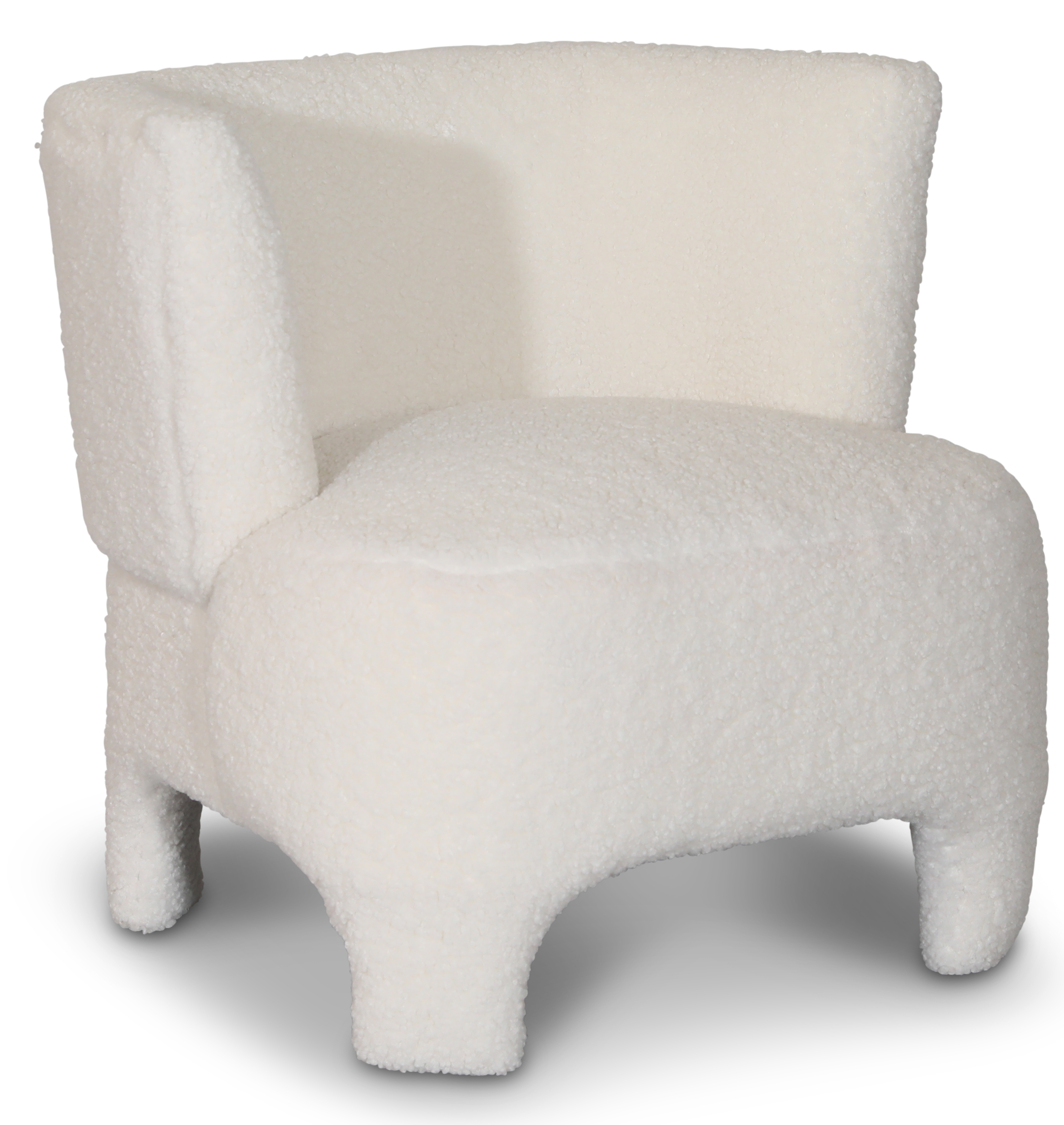 Stenkyrka er en lenestol med vakre runde former og en skjønn komfort. Kledd i offwhite teddy.