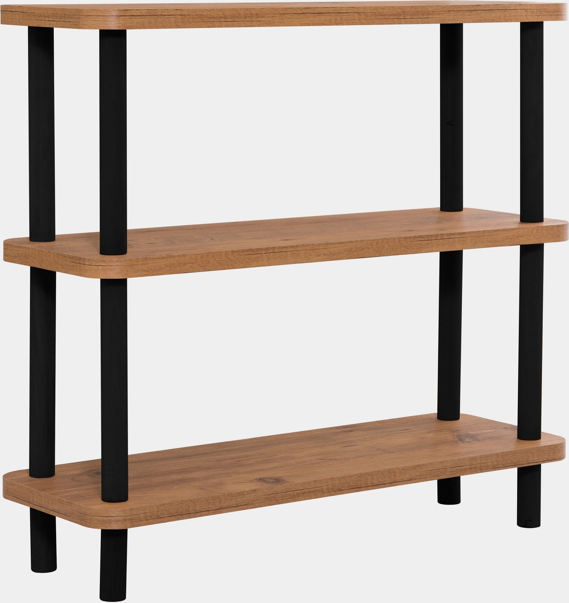 Bokhylle laget av melaminbelagt sponplate og agnbøk.
