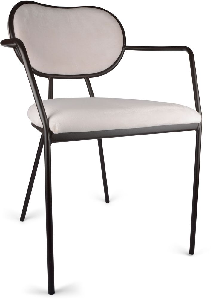 En luksuriøs stol med en tidløs design. Understellet er tilvirket i svartlakkert metall og et veldig behagelig sete i hvitt fløyelstoff.
