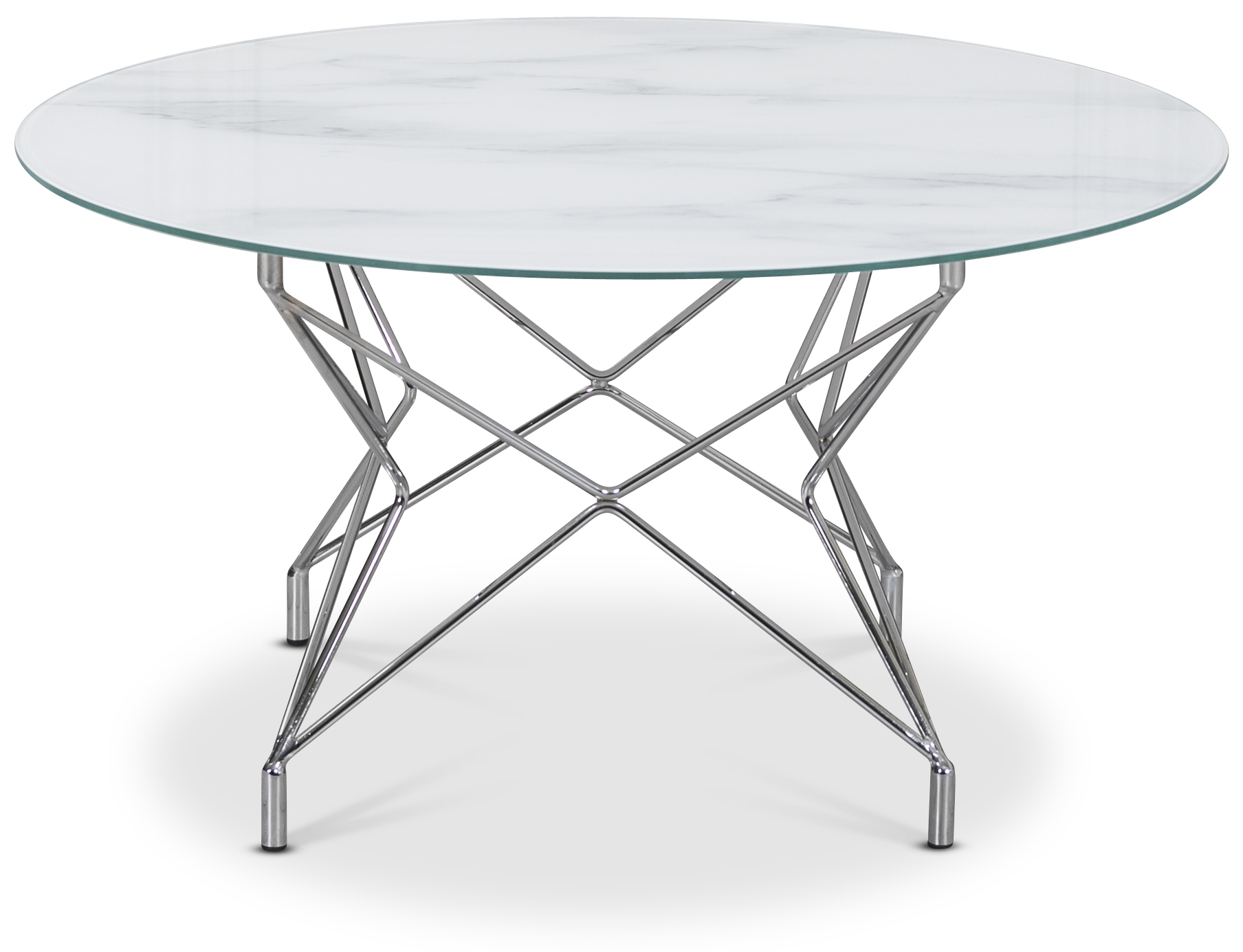 Stuebord Star 90 cm - Hvitt marmorert glass / forkrommet understell