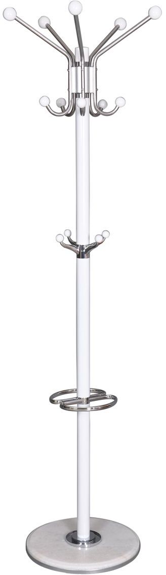 En fin stumtjener med et klassisk design. Kleshengeren er laget av forkrommet metall med detaljer i hvitt tre, med flere kroker i ulike høyder.