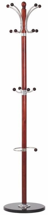 Elegant stumtjener for både store og små. Laget i heltre med en fin utførelse av antikt kirsebær, flere kroker i forkrommet metall i ulike høyder, slik at både voksne og barn kan benytte seg av kleshengeren. Foten er av svært fin svart marmor for litt følelse av luksus. Møbelet passer perfekt inn i entréen.