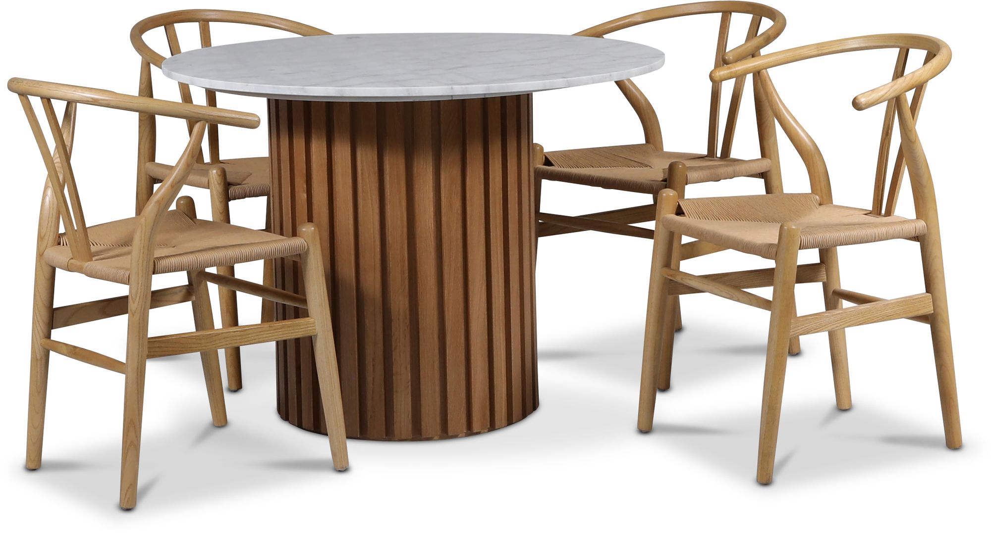 - Sumo spisegruppe Ø105 cm inkl. 4 stk. Brandon spisestol - Oljet eik / Lett marmor