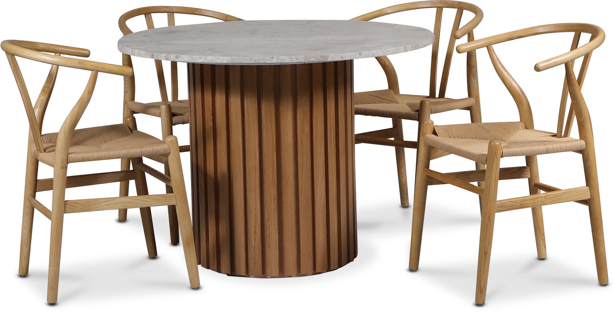 Sumo spisegruppe Ø105 cm inkl. 4 stk. Brandon spisestol - Oljet eik/sølvmarmor