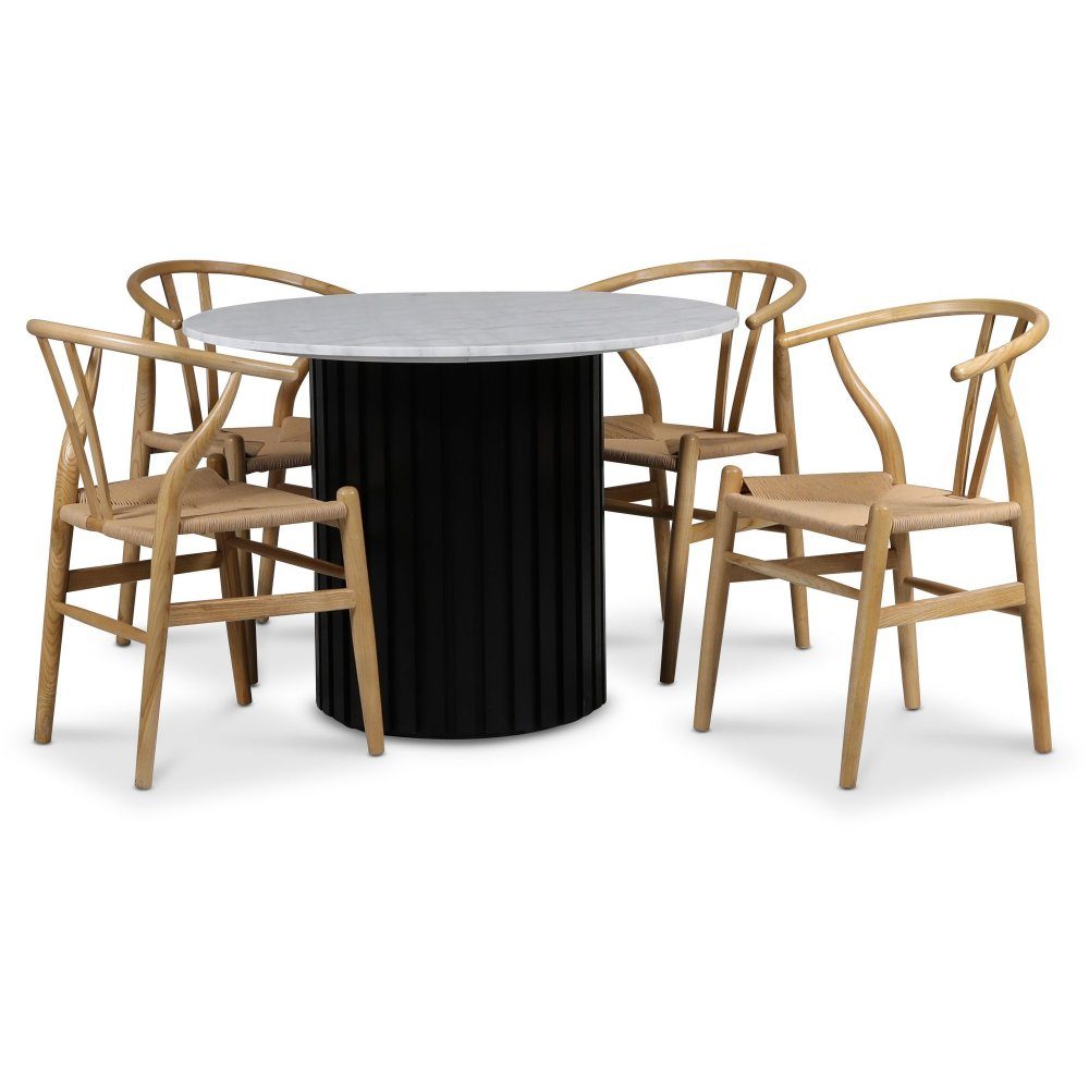 Sumo spisegruppe Ø105 cm inkl. 4 stk. Brandon spisestoler - Svartbeiset / Lys marmor: