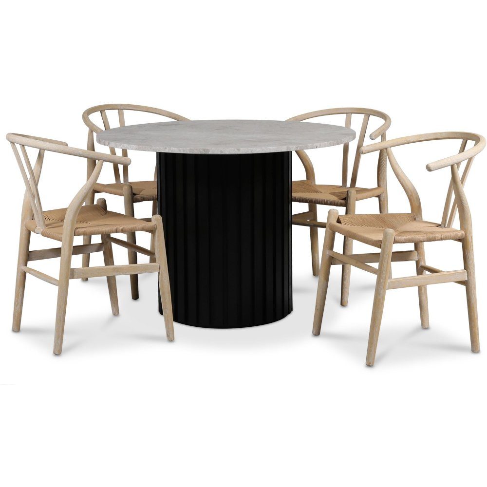 - Sumo spisegruppe Ø105 cm inkl. 4 stk. Brandon spisestoler whitewash - Svartbeiset / sølvmarmor