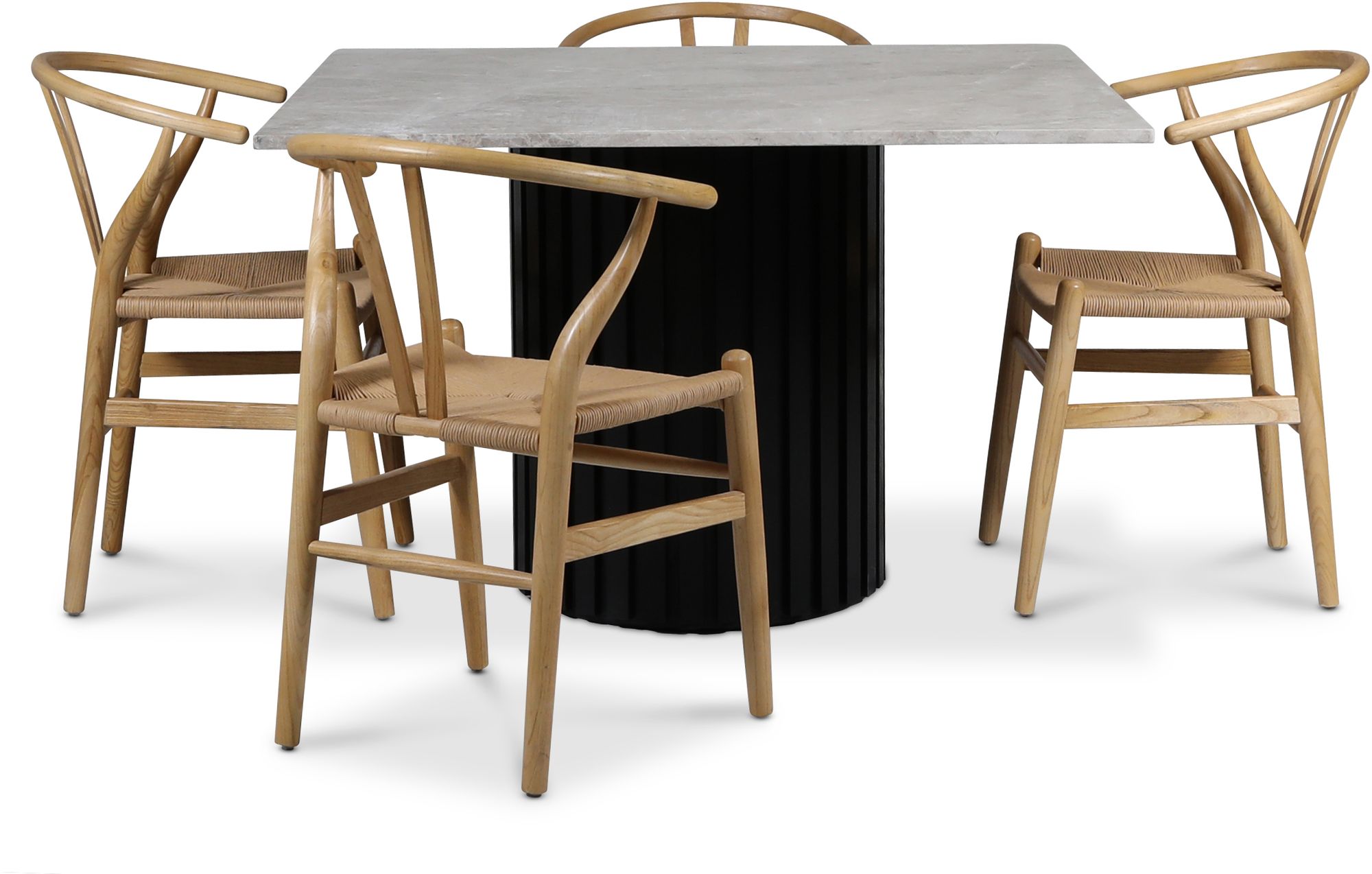 Sumo spisegruppe 120x120 cm inkl. 4 stk. Brandon spisestol - Svart rødbeter / sølvmarmor