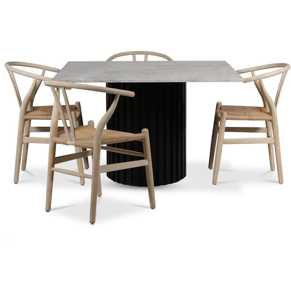 Sumo spisegruppe 120x120 cm inkl. 4 stk. Brandon spisestoler whitewash - Svartbeiset/ sølvmarmor: