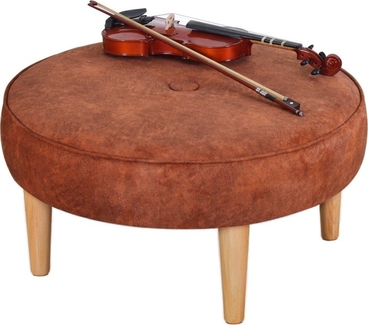 Puff laget av tre. Dekket med bomull og fløyel. Stoppe skum.