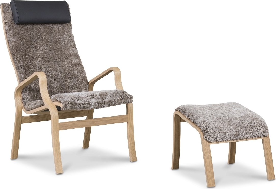 Svea lenestol med fotskammel - brunt fåreskinn / oljetek