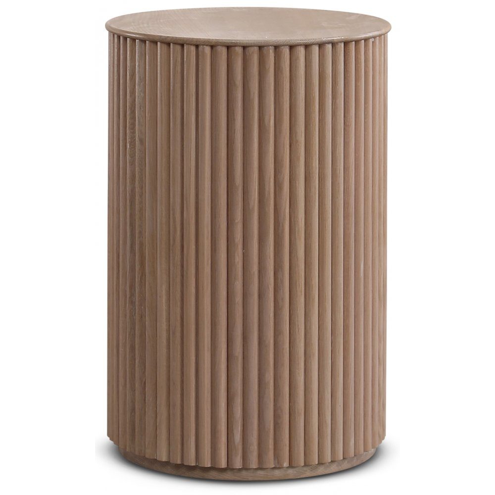 Prydelig sylinderformet sidebord, laget av solide eikestaver og en solid kantlist, topplate av finér i whitewash.