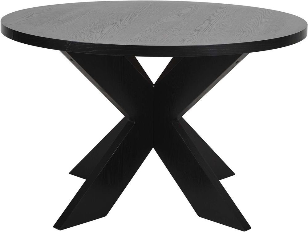 Stilig spisebord i sort ask finér, MDF og kryssfiner. Et solid bygget spisebord med 120 cm rund plate.