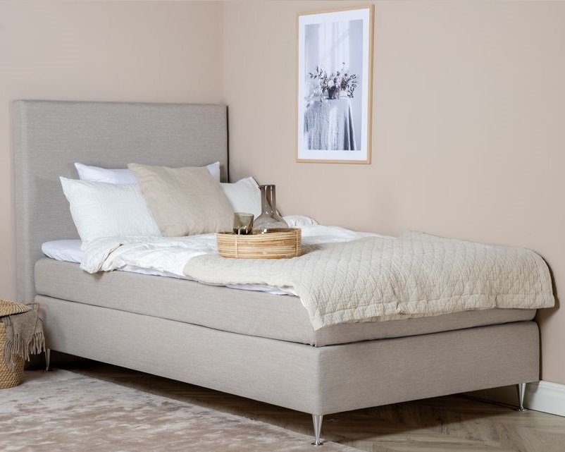 Tällberg, en moderne kontinentalseng i valgfritt polyester- eller fløyelsstoff. Velg også hardhet på madrassens etter hva som passer deg, les gjerne sengeguiden vår. En seng som gir et flott og luksuriøst inntrykk i soverommet med sin høye høyde og mange madrasser, oppbygget i 3 lag for å gi en god søvn.