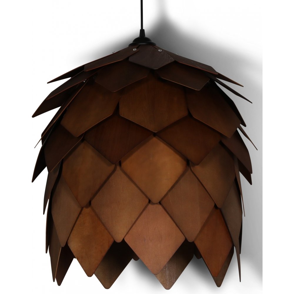 Frost taklampe i lameller. Frost er laget i valnøttbeisede trelameller.