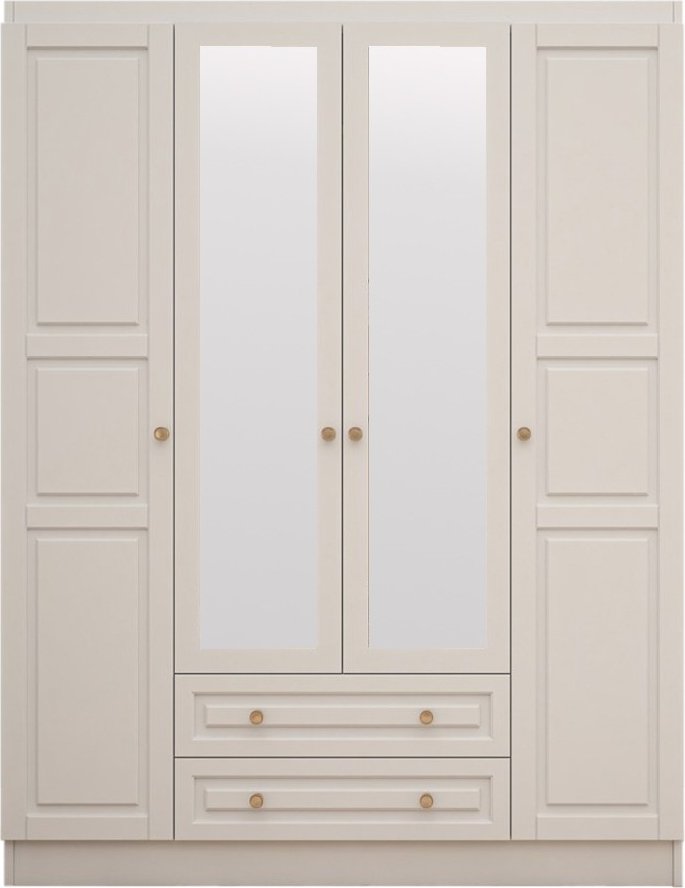Garderobeskap laget av melaminbelagt sponplate og MDF.