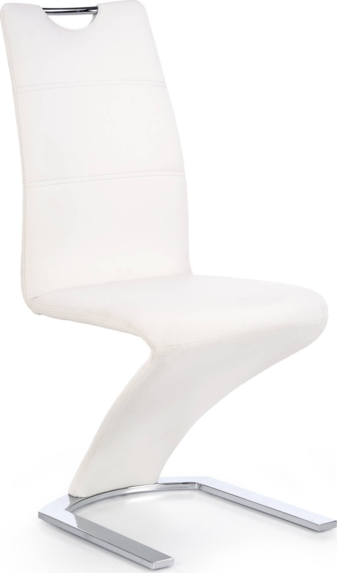 En fin spisestol med et moderne design. Spisestolens understell er tilvirket av forkrommet metallsetet er trukket med et herlig kunstskinn for maksimal komfort.